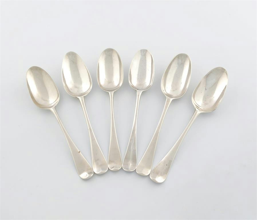 A collection of six 18th century silver Hanoverian pattern tablespoons