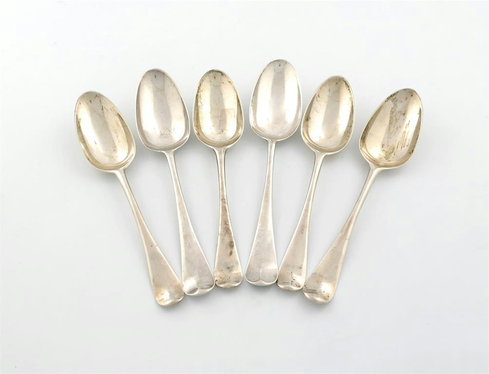 the oval bowls with plain heels, plus a pair of George III silver Hanoverian pattern tablespoons, by Benjamin Cartwright, London 1761, the reverse of the terminals scratch initialled, approx. weight 13.5oz. (6)