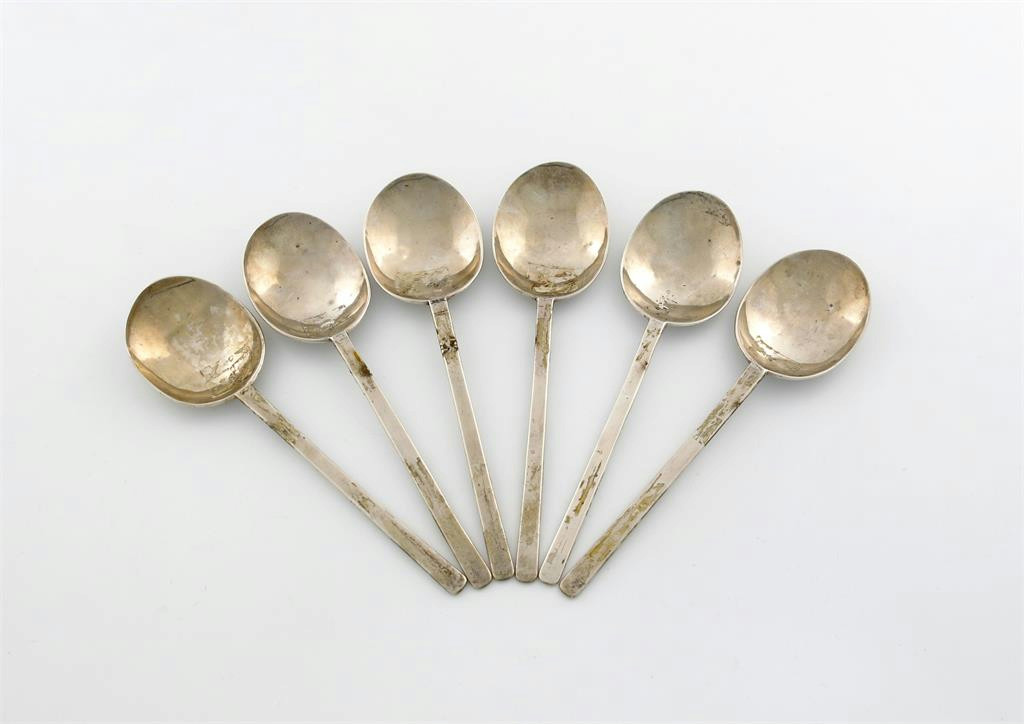 A rare set of six Commonwealth provincial silver Puritan spoons,