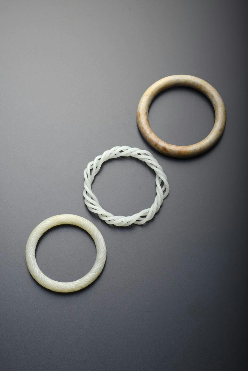Cf. Chinese Jade Throughout the Ages, An Exhibition Organised by The Arts Council of Great Britain and The Oriental Ceramic Society, p.141, no.466, where a three strand bracelet is illustrated.