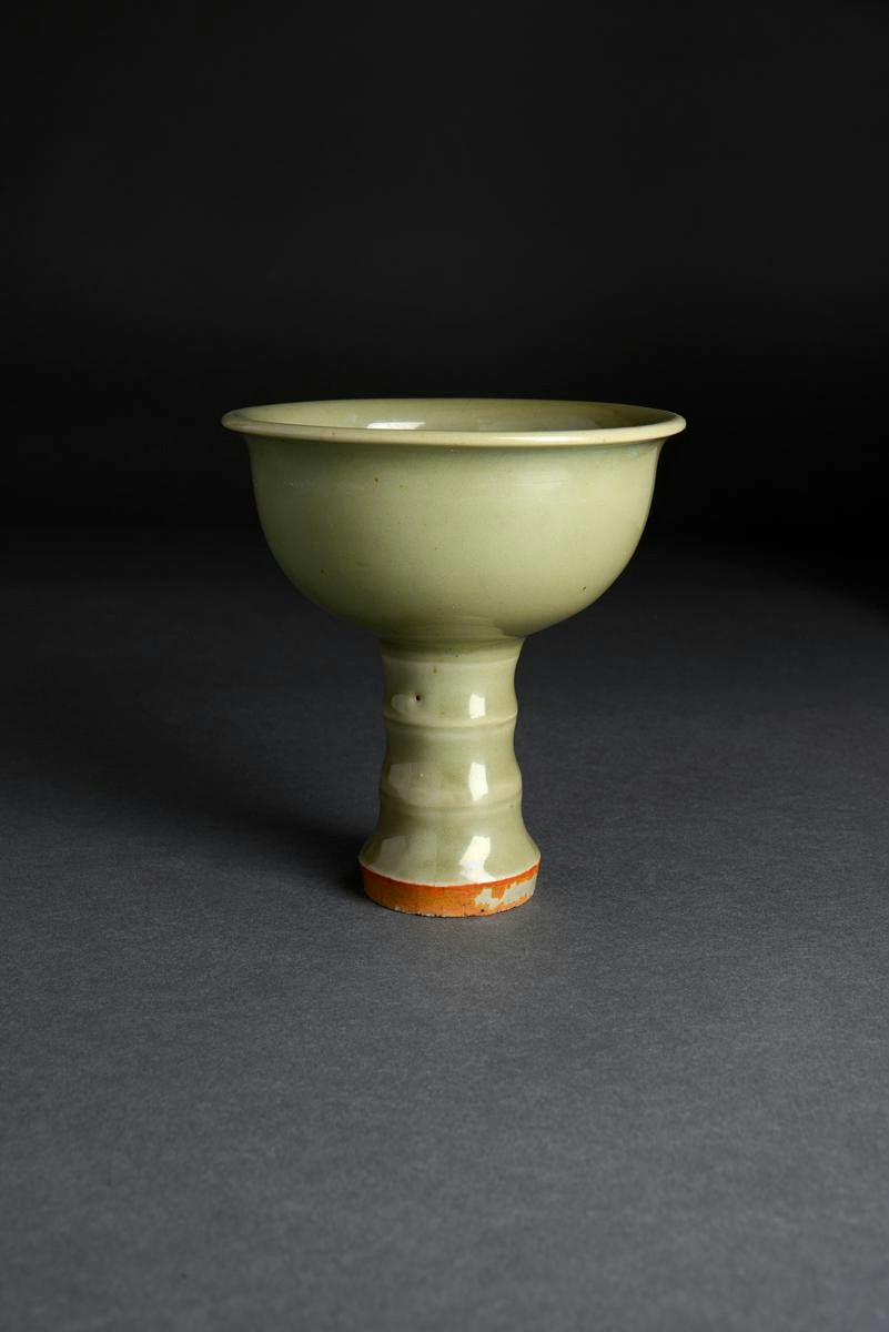 A CHINESE LONGQUAN CELADON STEM CUP MING DYNASTY C.15TH CENTURY The plain ovoid body with a...