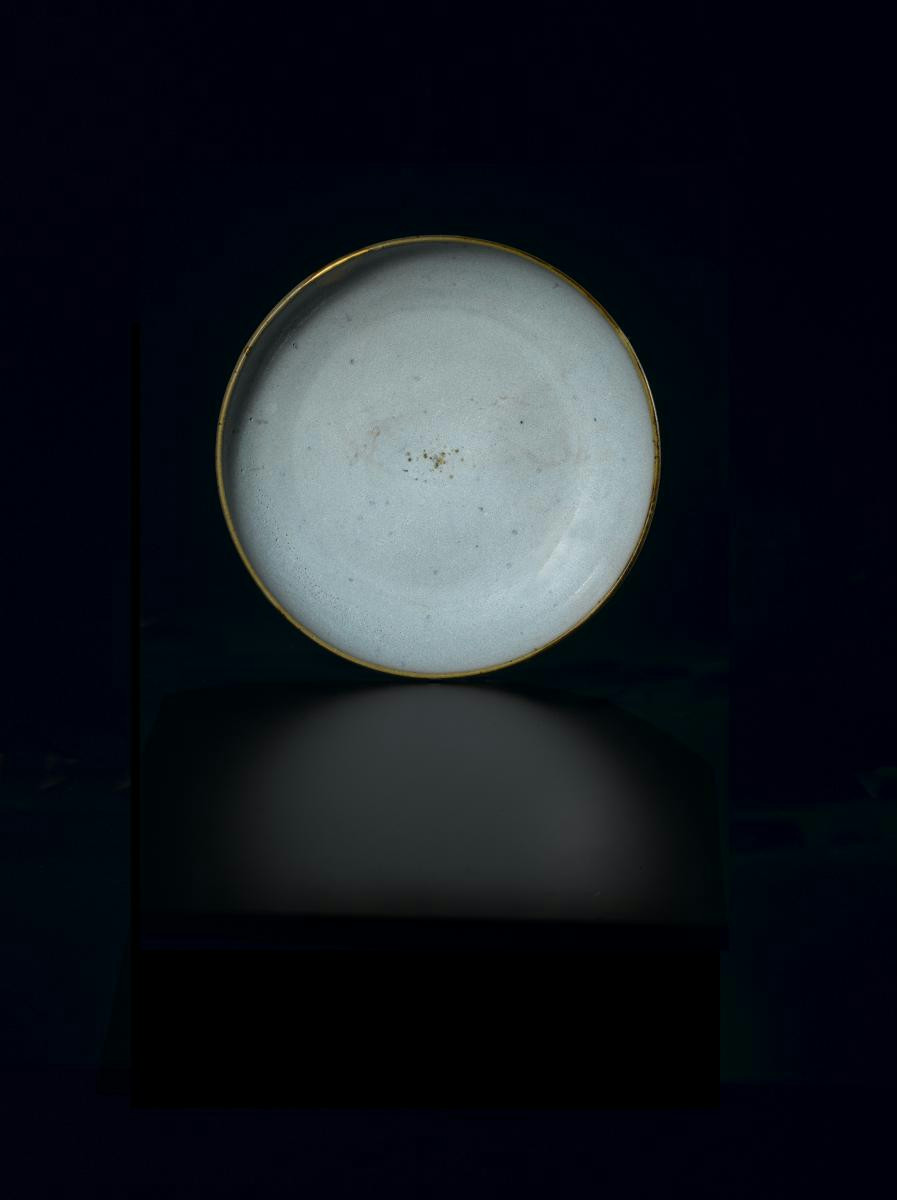 A LARGE CHINESE JUNYAO SHALLOW BOWL SONG DYNASTY 960-1279 AD Decorated with an even pale blue glaze