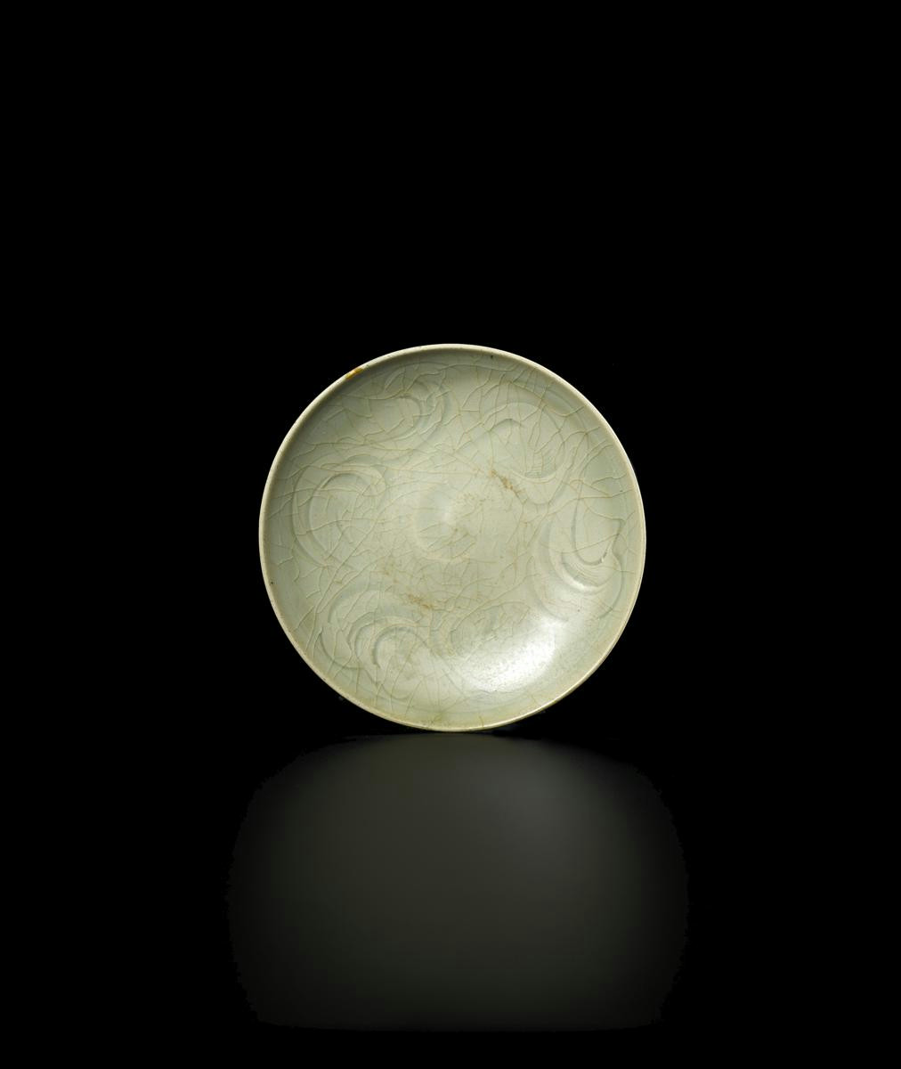 A SMALL CHINESE YAOZHOU DISH SONG DYNASTY 960-1279 AD Carved to the well with a swirling wave design