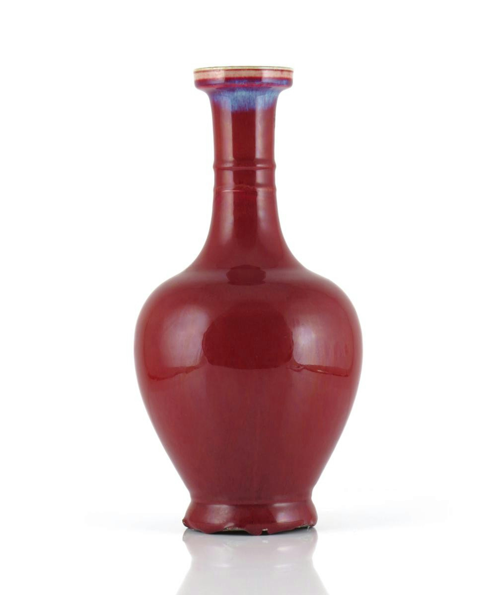 A CHINESE FLAMBE GLAZED BOTTLE VASE