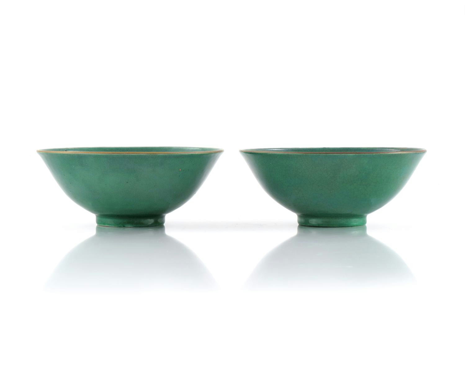 A PAIR OF CHINESE GREEN GLAZED BOWLS