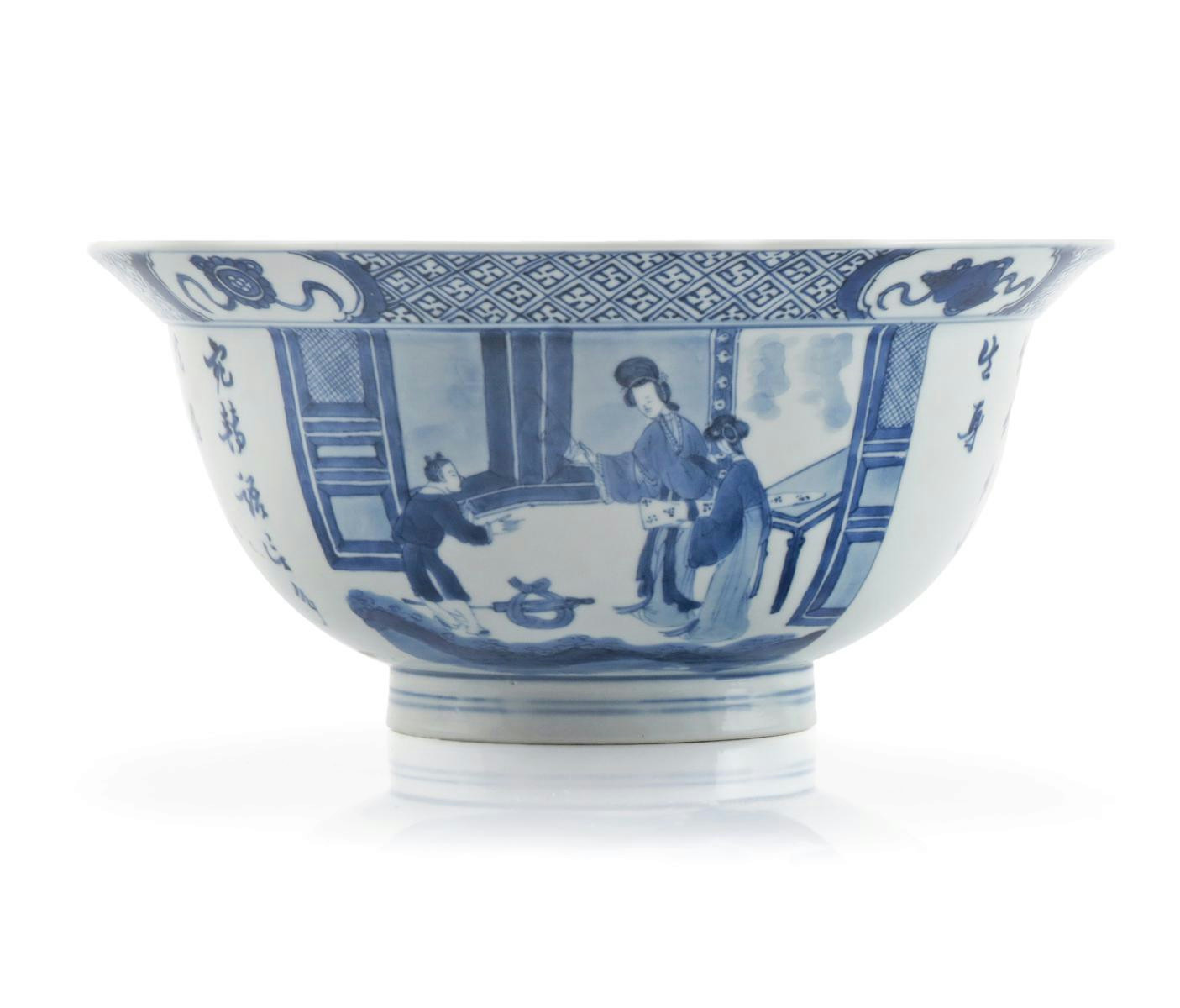 A CHINESE BLUE AND WHITE KLAPMUTS BOWL SIX CHARACTER KANGXI MARK AND OF THE PERIOD 1662-1722 The...