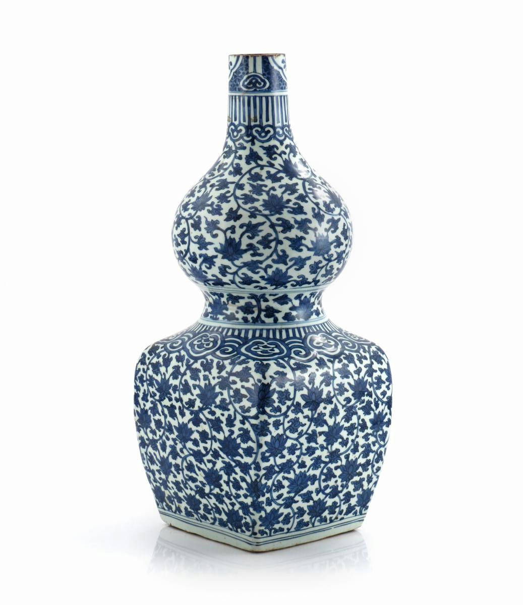 A CHINESE BLUE AND WHITE GOURD-SHAPED VASE