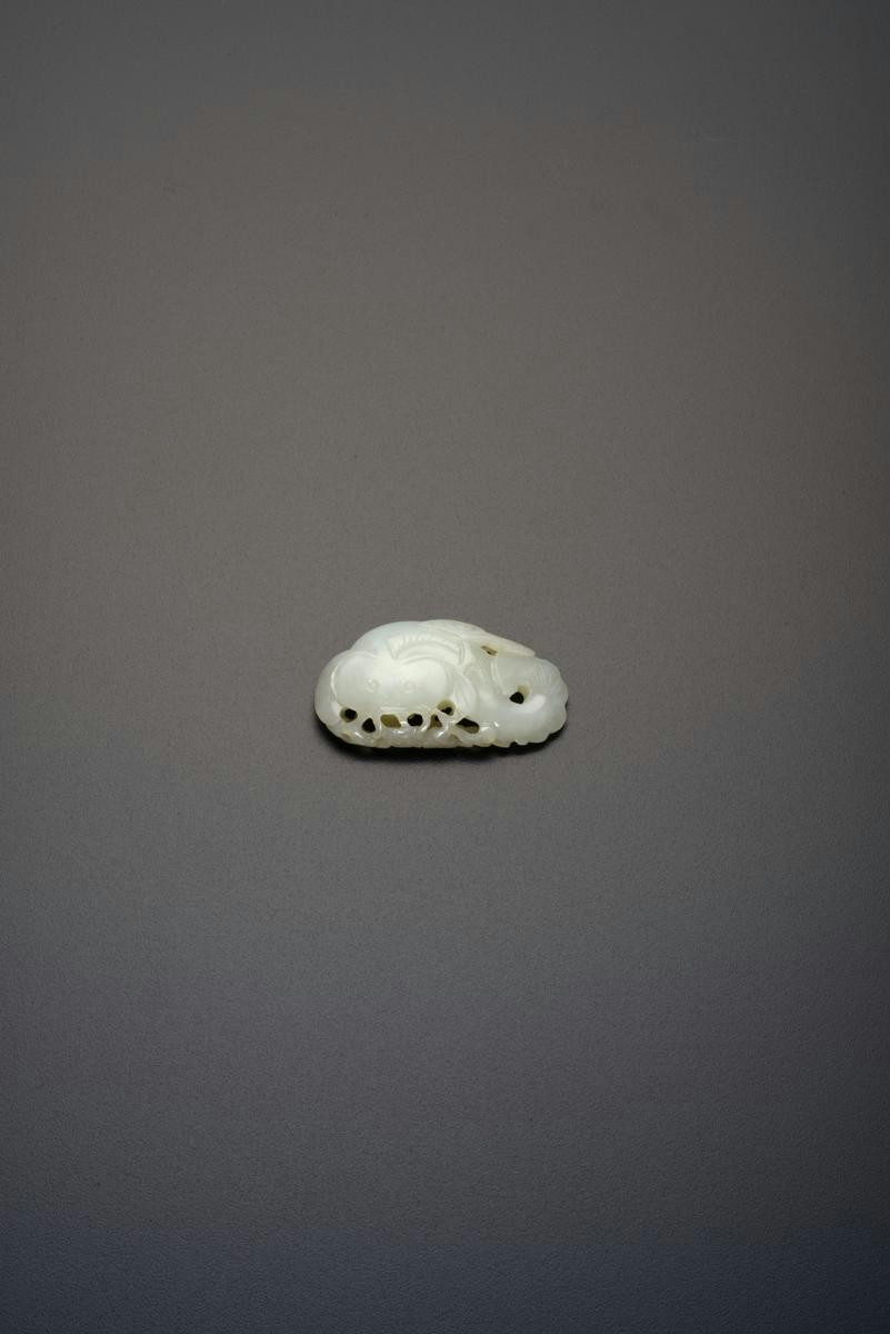 A CHINESE PALE CELADON JADE CARVING OF A CATFISH