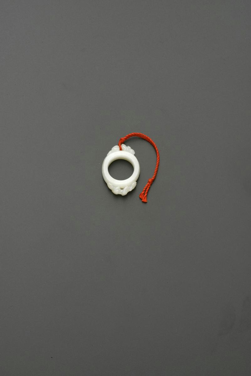 A CHINESE PALE CELADON JADE ARCHER'S RING QING DYNASTY Carved with two small chilongs clambering...