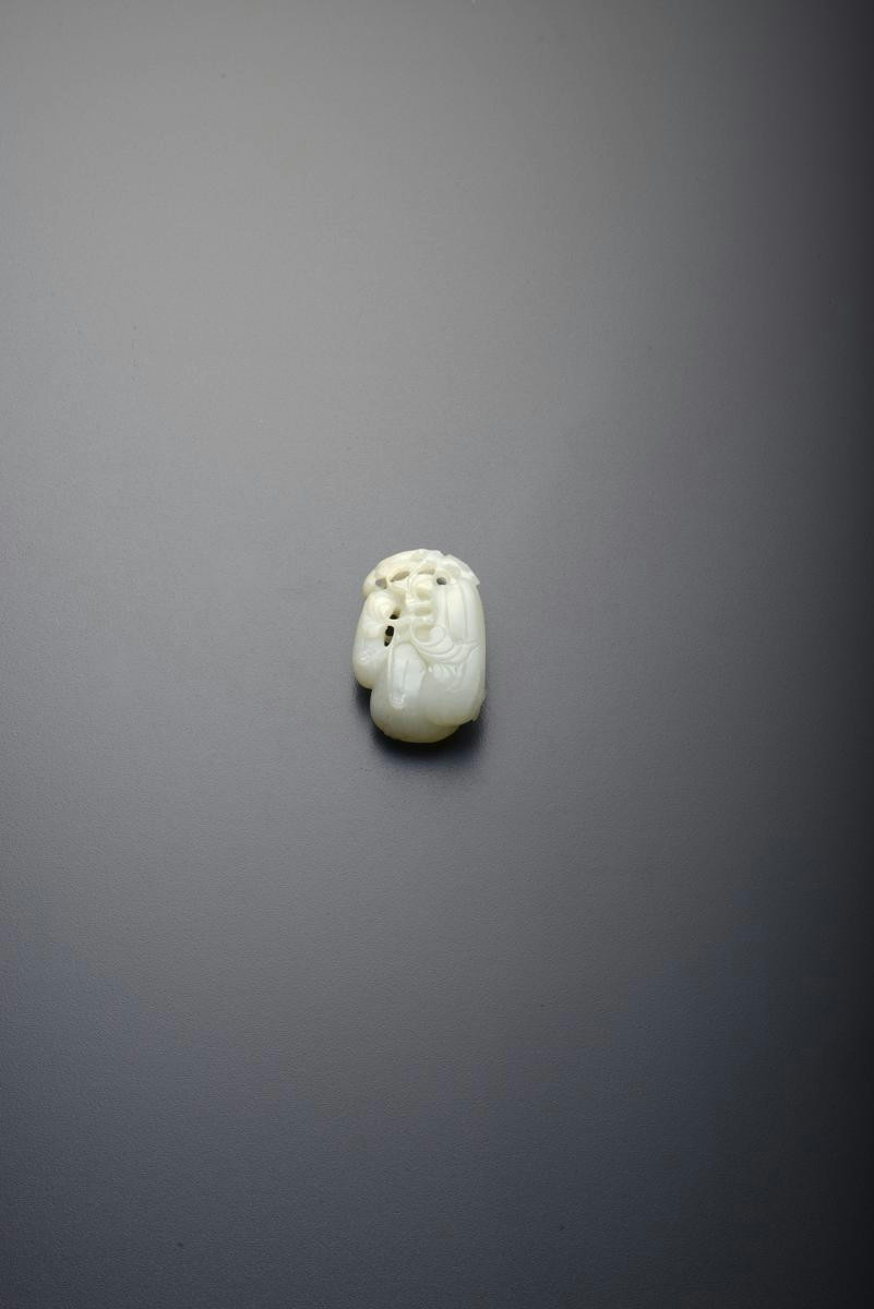 A CHINESE PALE CELADON JADE CARVING OF GOURDS QING DYNASTY With three fruits issuing from a...