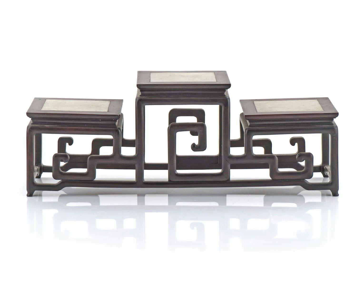 A CHINESE HARDWOOD STAND 19TH/20TH CENTURY With three square tops