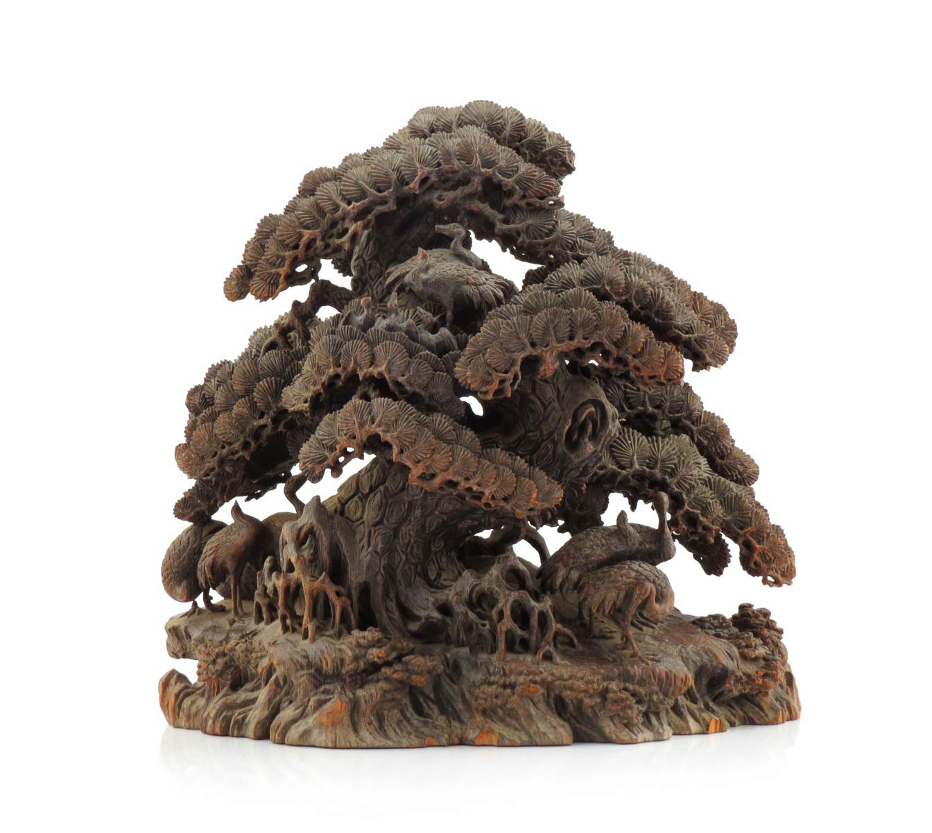 A CHINESE CARVED PINE MODEL OF A PINE TREE