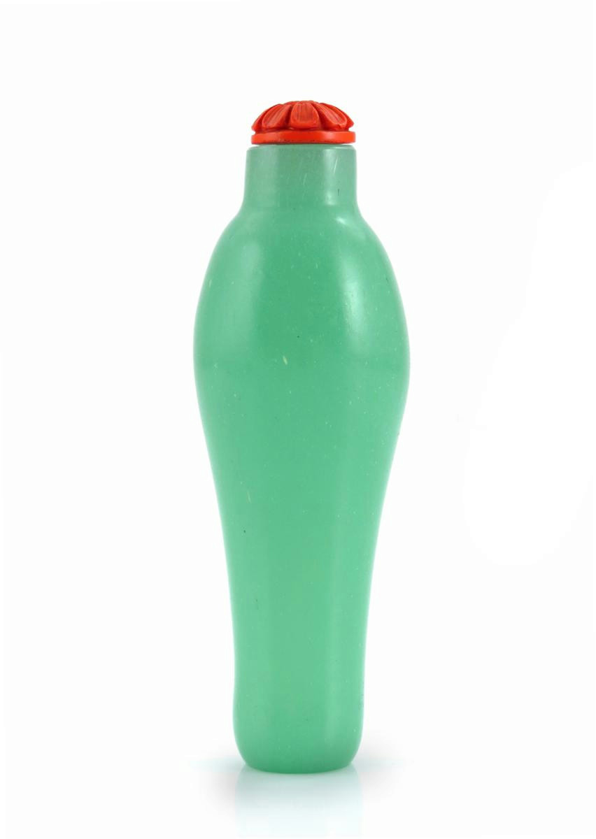A CHINESE GREEN GLASS SNUFF BOTTLE