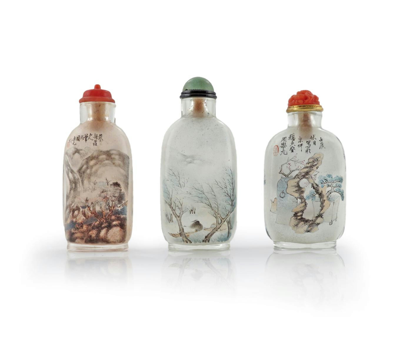 THREE CHINESE INTERIOR DECORATED SNUFF BOTTLES