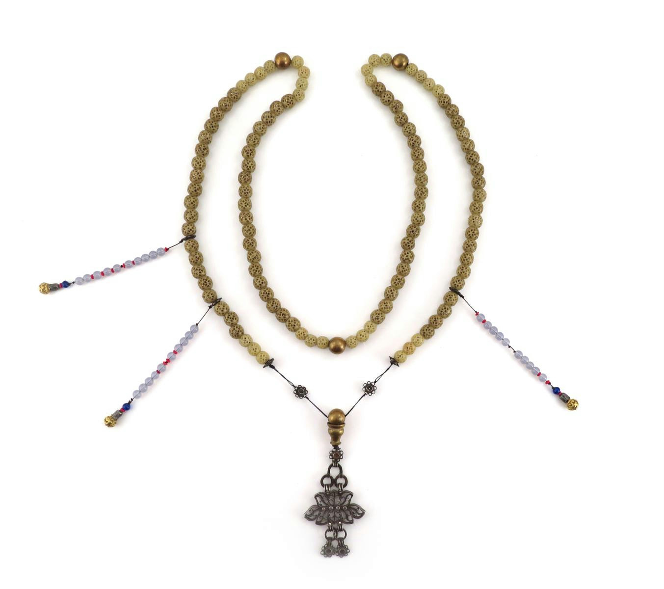 A CHINESE SOAPSTONE BEAD COURT NECKLACE