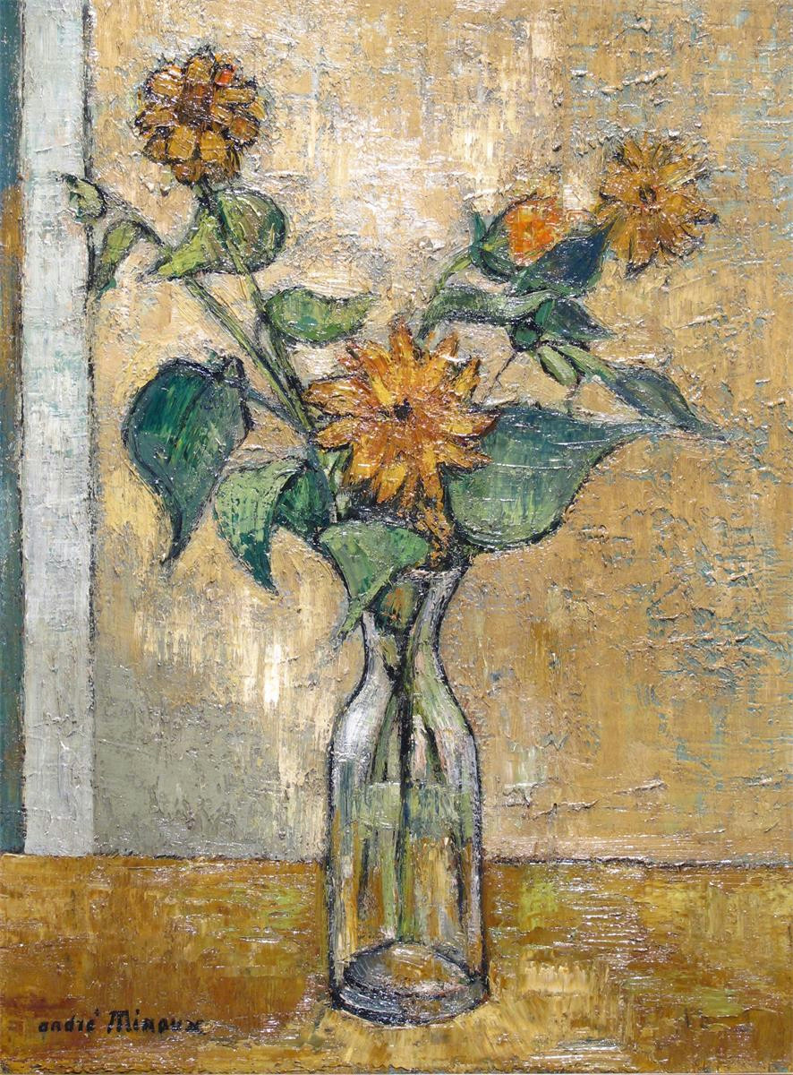 ‡André Minaux (French 1923-1986) Still life of flowers in a carafe Signed Oil on canvas 81 x 61cm