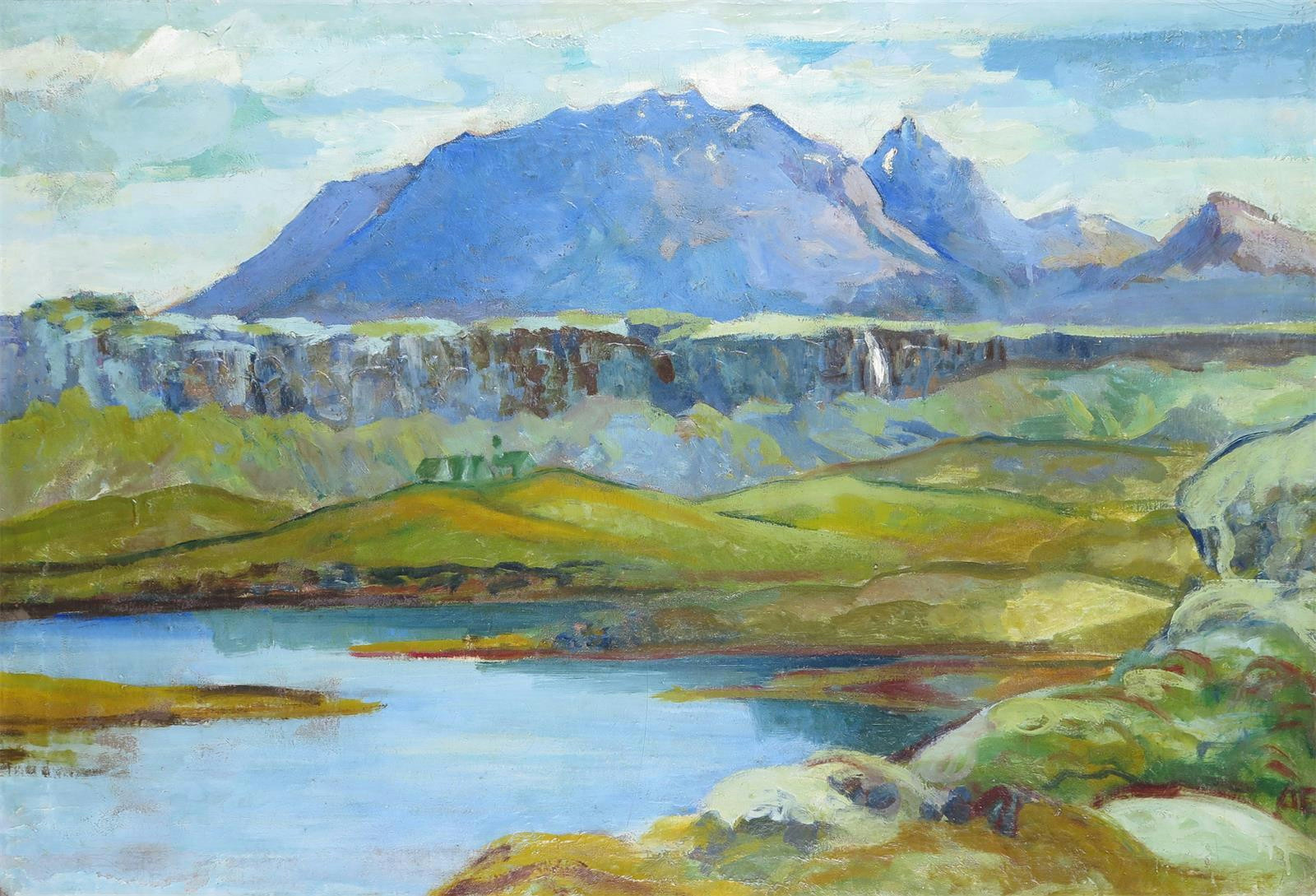Circle of George William Russell A lakeland landscape Possibly signed with initials lower right...