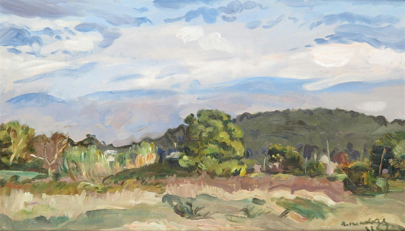 ‡Robert Mendoze (French b.1930) Il paysage au grand chêne Signed and dated 83 Oil on canvas 27 x...