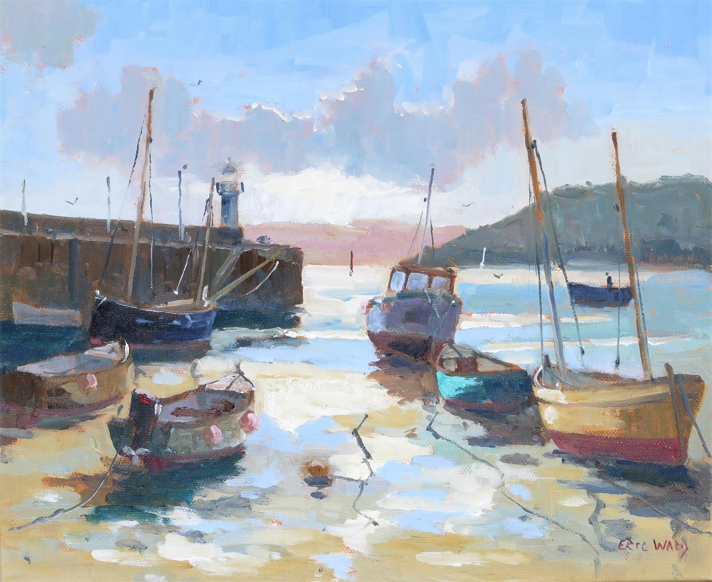 ‡Eric Ward (b.1945) Cornish harbour at low tide Signed Oil on canvas 25 x 30cm