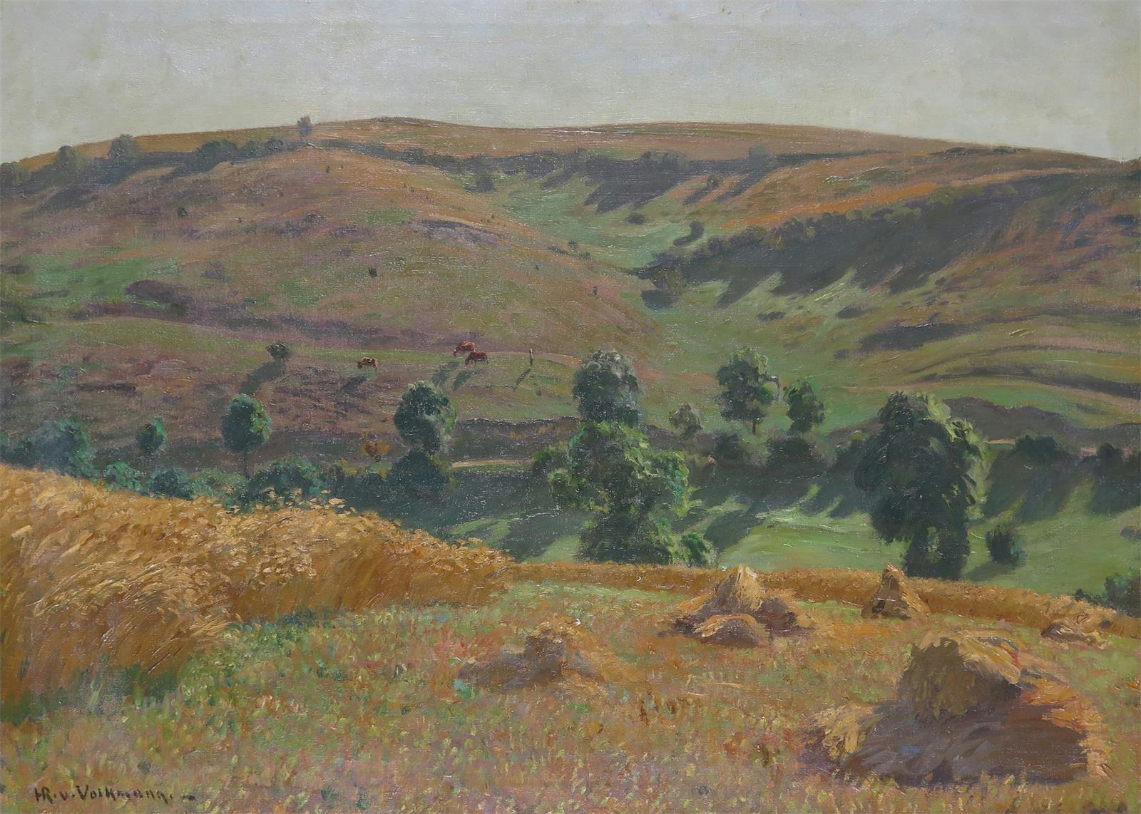 Hans Richard von Volkmann (German 1860-1927) Cattle in a summer landscape Signed Oil on canvas 56...