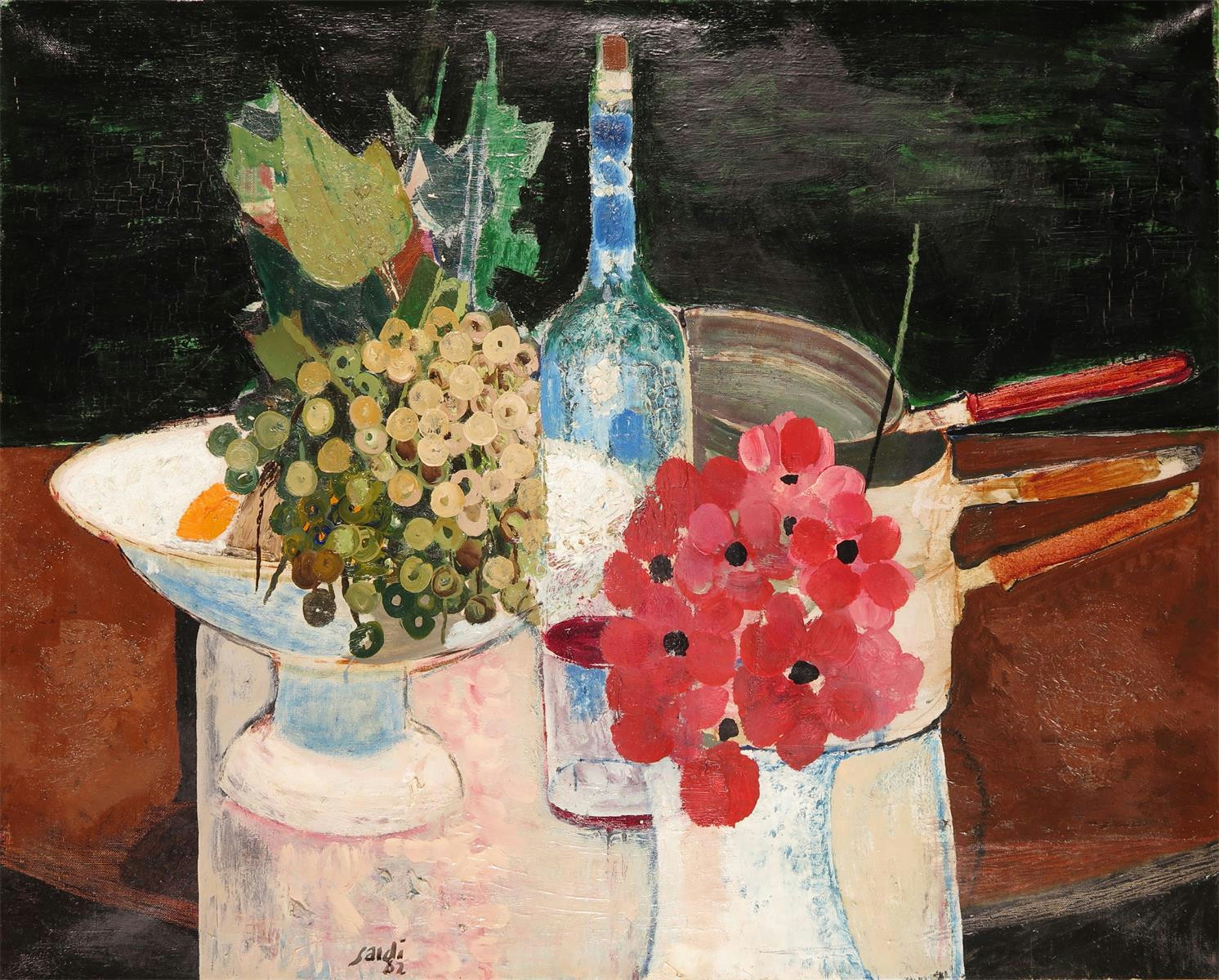 Abolghassem Saidi (Iranian b.1926) Still life of flowers and grapes Signed and dated 62 Oil on...