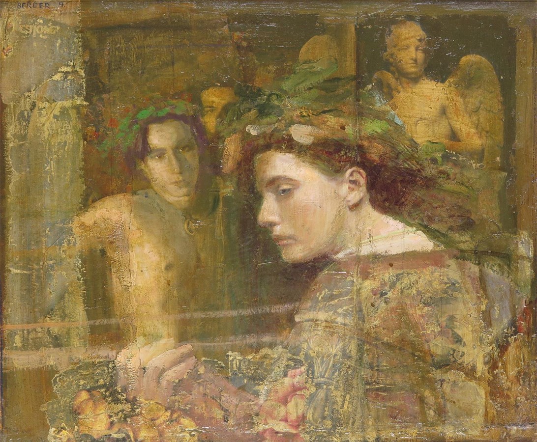 ‡Mersad Berber (Bosnian 1940-2012) Lady with Azer Signed Oil and collage on canvas 46.5 x 55.25cm...