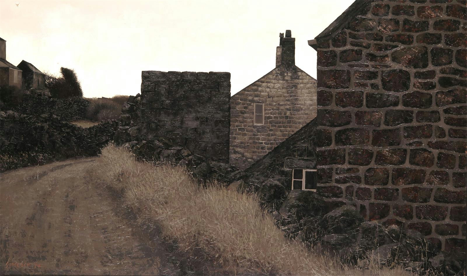 ‡Jack Simcock (1929-2012) Cottages by a track Signed and dated 74 Oil on board 46 x 76cm