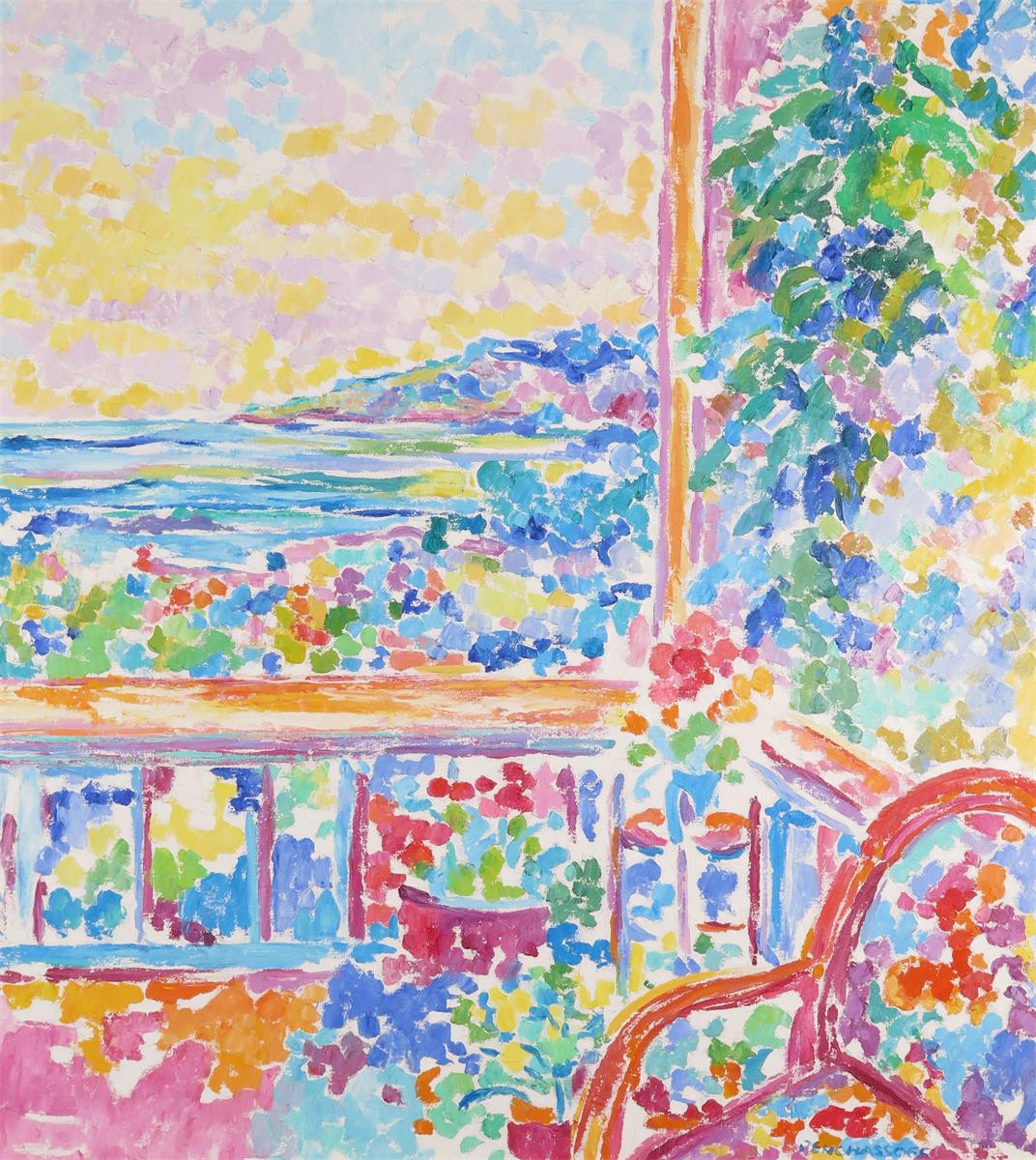 ‡Anne Penchasoff (20th Century) Sunny balcony view Signed Oil on canvas 102 x 92cm Provenance: ...