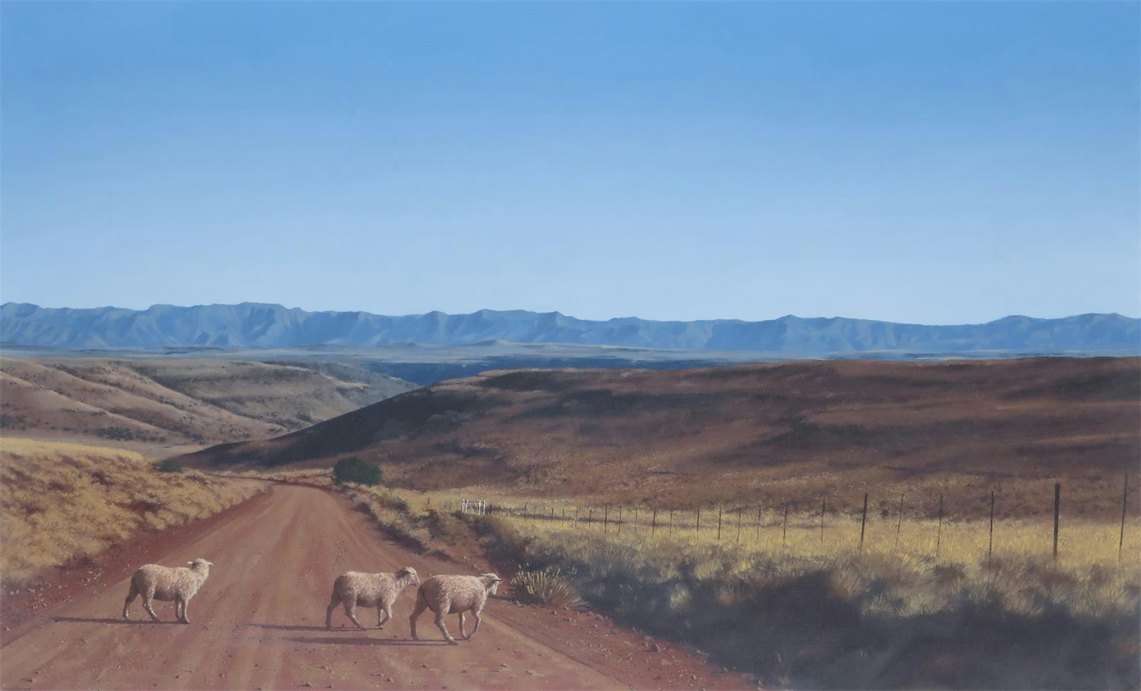 Christopher Haskins (South African 1957-1999) Sheep in the Karoo Signed Oil on paper 34.5 x 57cm