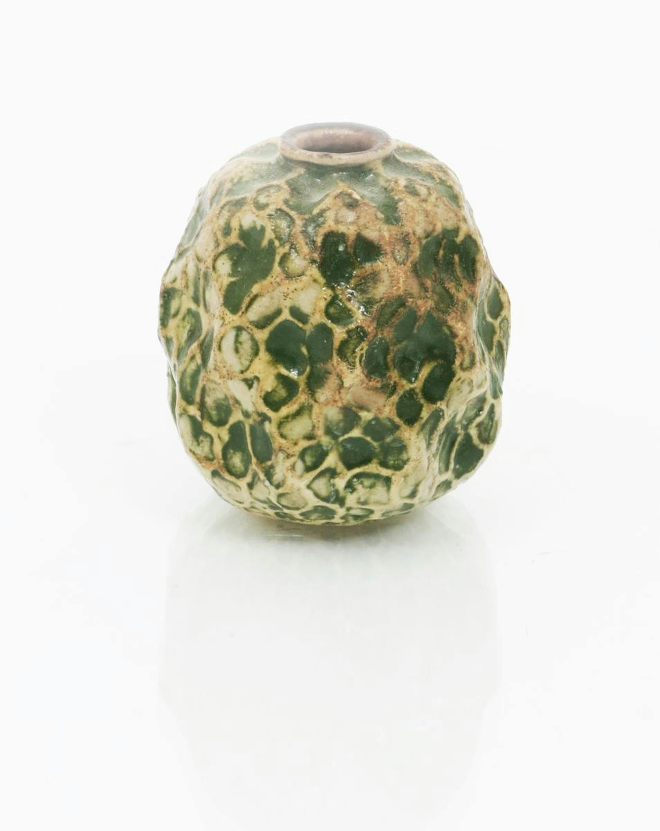 A Martin Brothers miniature gourd vase by Edwin & Walter Martin, dated 1907, dimpled, veined gourd form glazed green and buff incised 1907 Martin Bros London & Southall 4.5cm. high