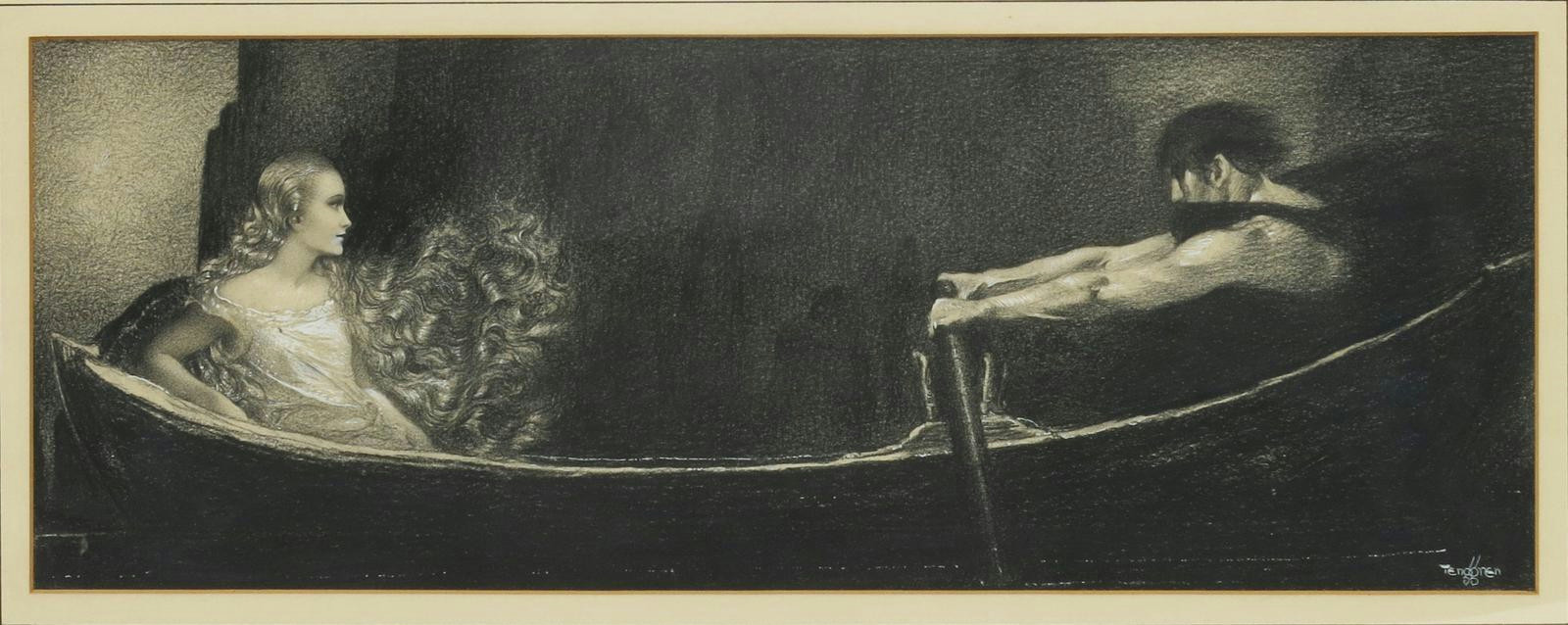 Gustav ATenggren (1896-1970) figures in a rowing boat conte crayon and white heightening on paper