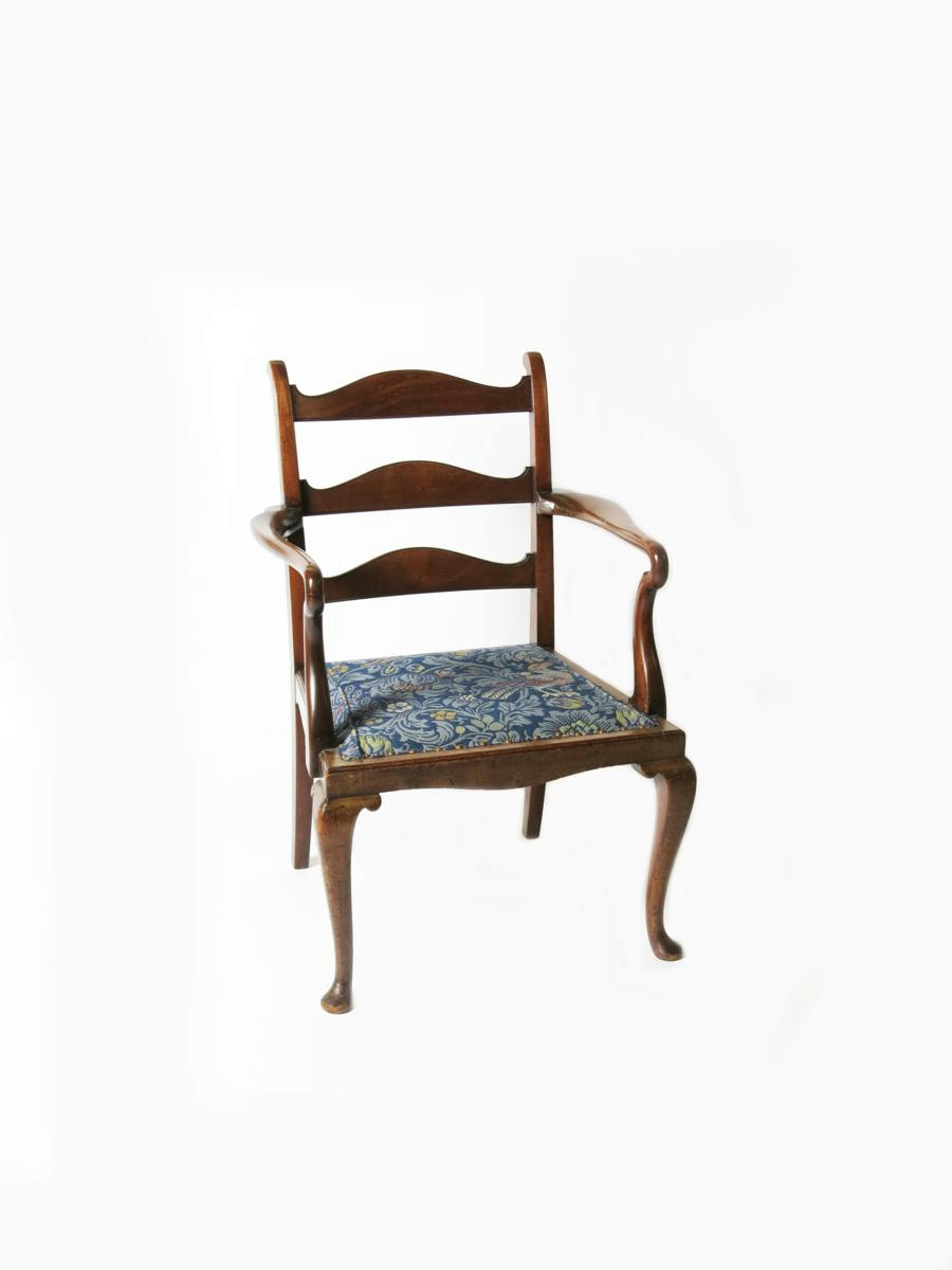 A Morris & Co mahogany armchair, with Bird woven woollen tapestry seat stamped mark, 90cm. high