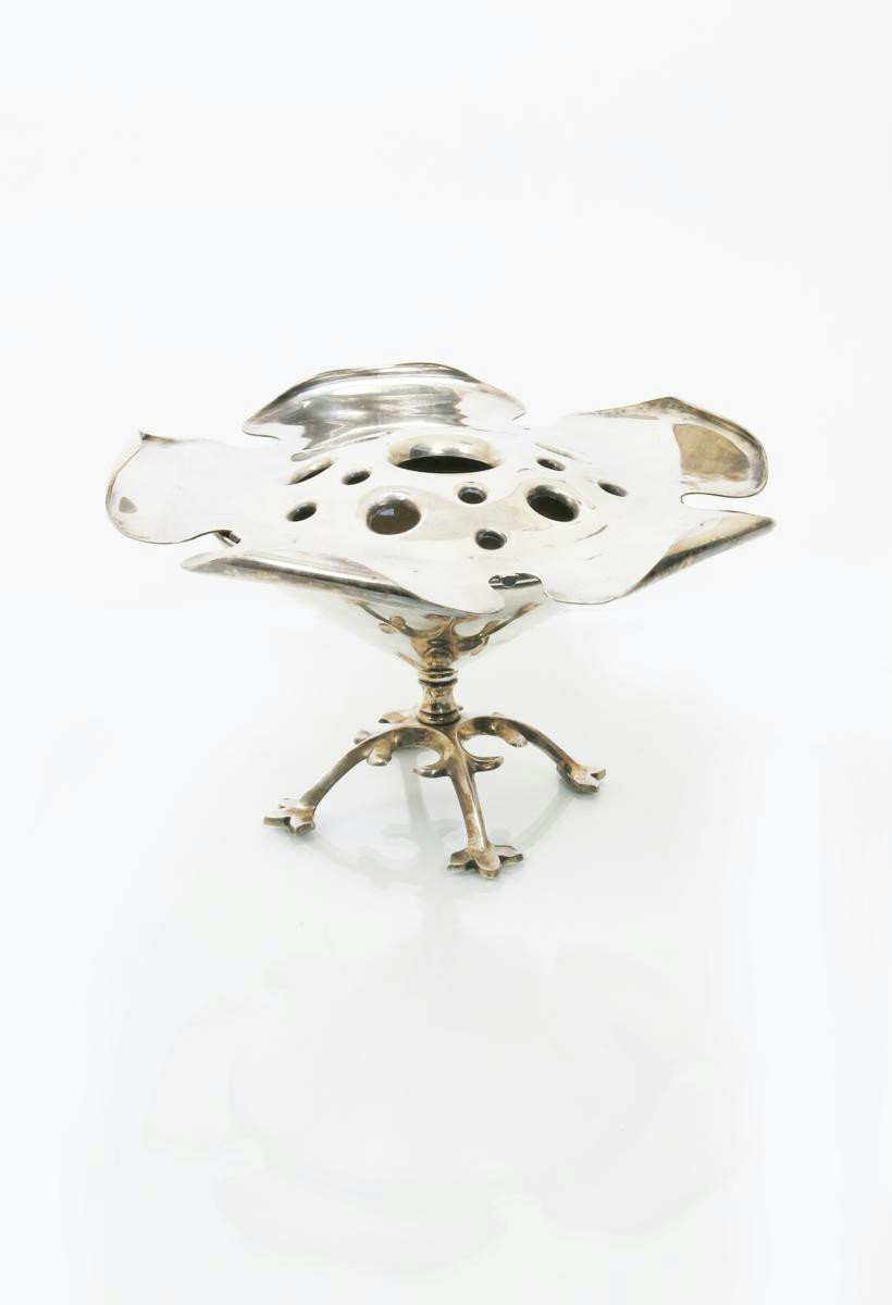 A rare W.A.S Benson electroplated metal rose bowl and cover