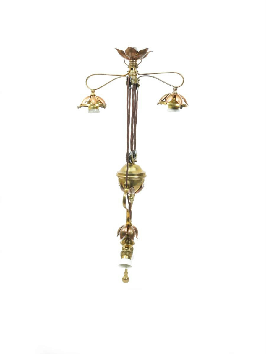 A W.A.S Benson rise and fall copper and brass ceiling light