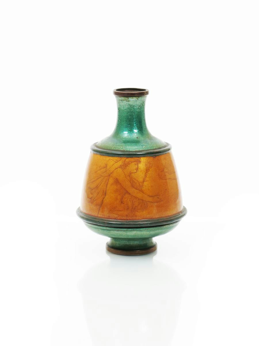 A rare enamelled metal Symbolist vase by Sir Hubert von Herkomer RA