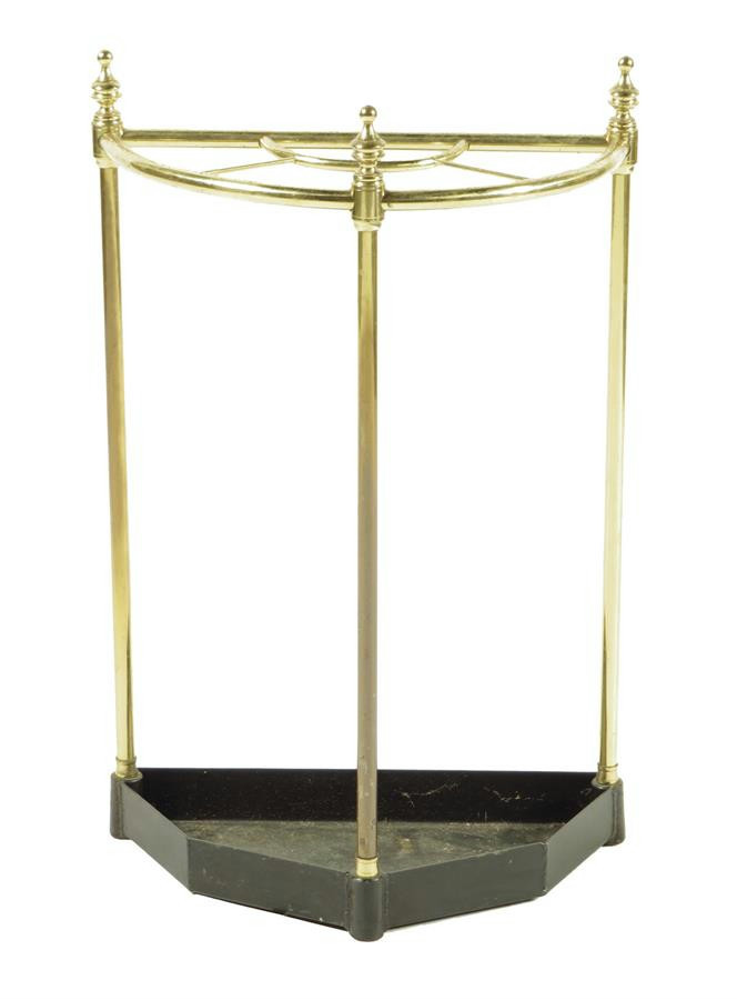A brass five division stickstand, with a painted metal base, 62.2cm high, 40.1.cm wide, 21cm deep.