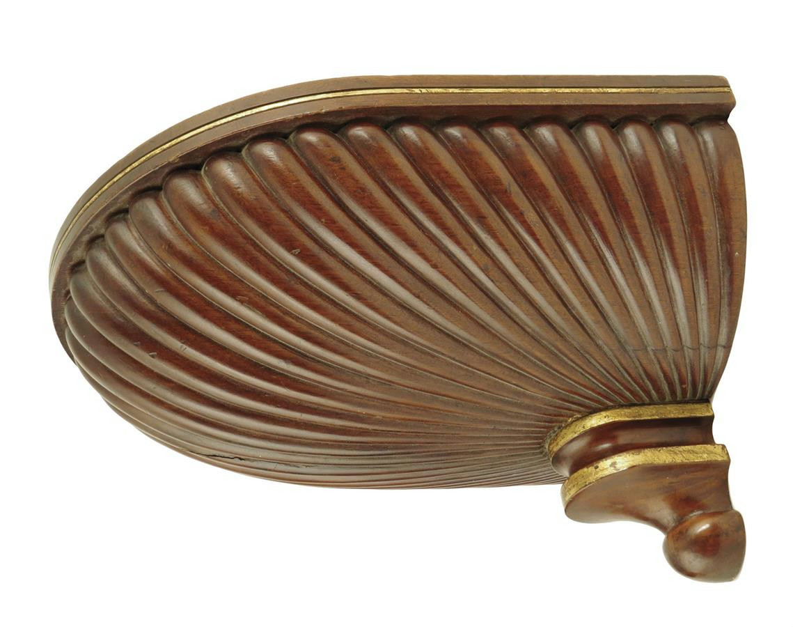 A George IV mahogany and parcel gilt wall bracket, of ribbed design, stamped 'Vokins, Makers, London', early 19th century, 17.5cm high, 27cm deep.