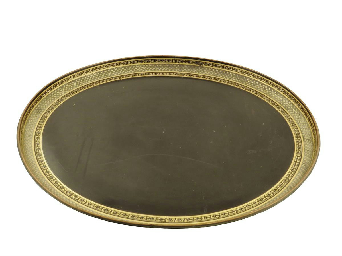 A Victorian papier-maché tray, with gilt diaper borders, the reverse marked 'HODGES & SONS IRONMONGERS DUBLIN', 58.8 x 70.9cm.