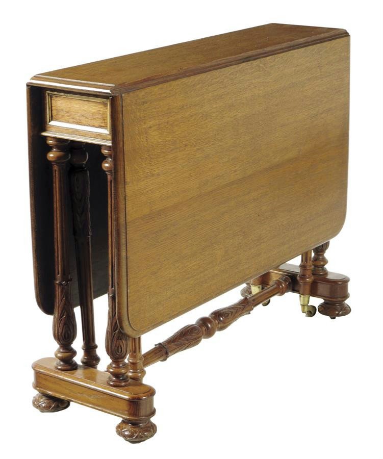 A Victorian oak and parcel gilt Sutherland table by Howard & Sons