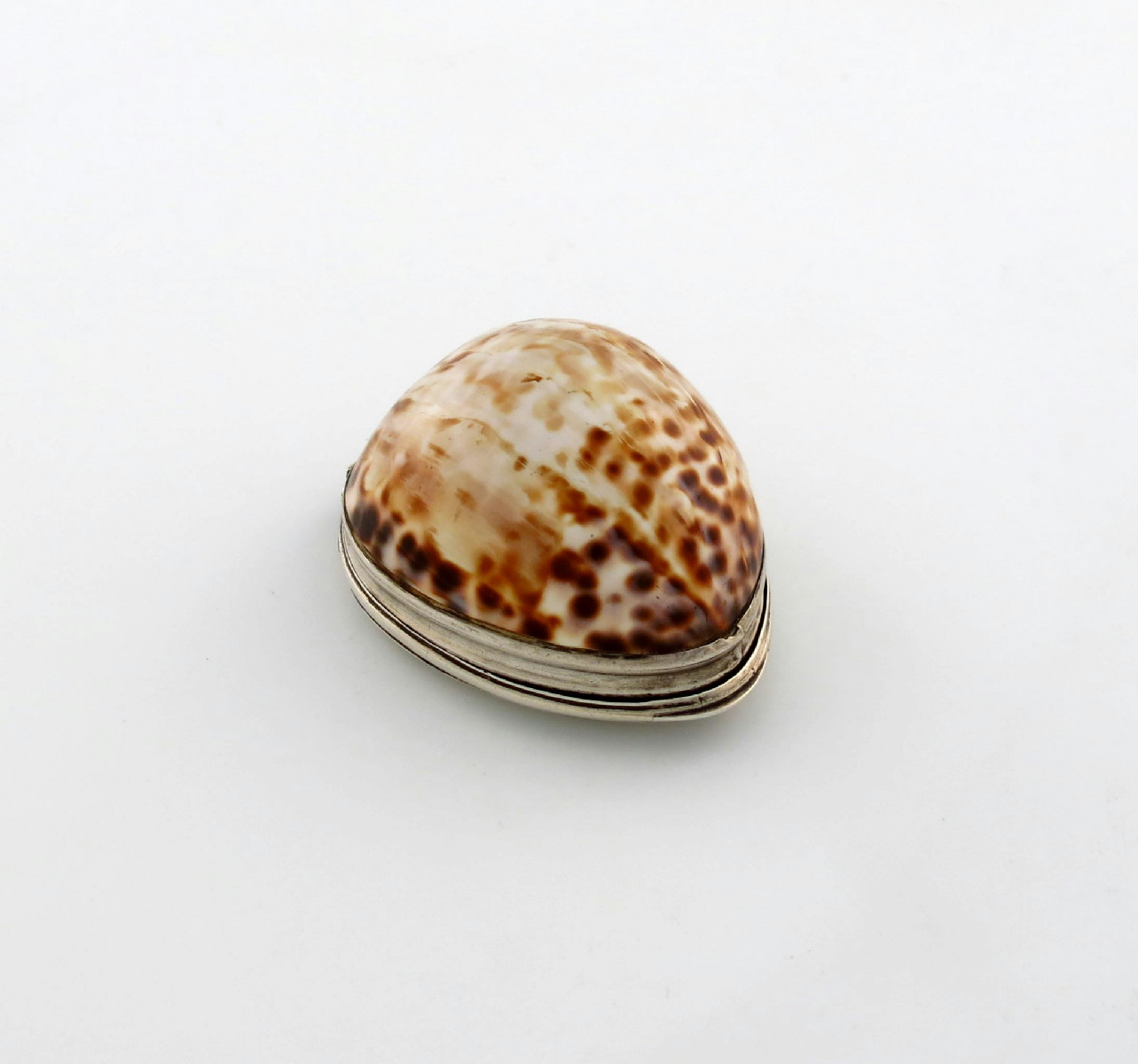 A late 18th / early 19th century silver-mounted cowrie shell snuff box