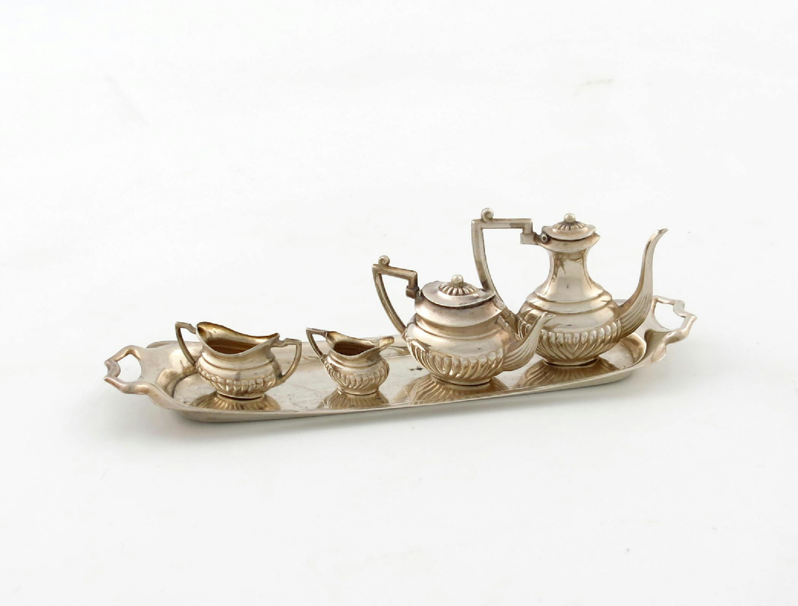 oval form, part-fluted decoration, scroll handles, length of tray 14.9cm, approx. weight 1.2oz. (5)