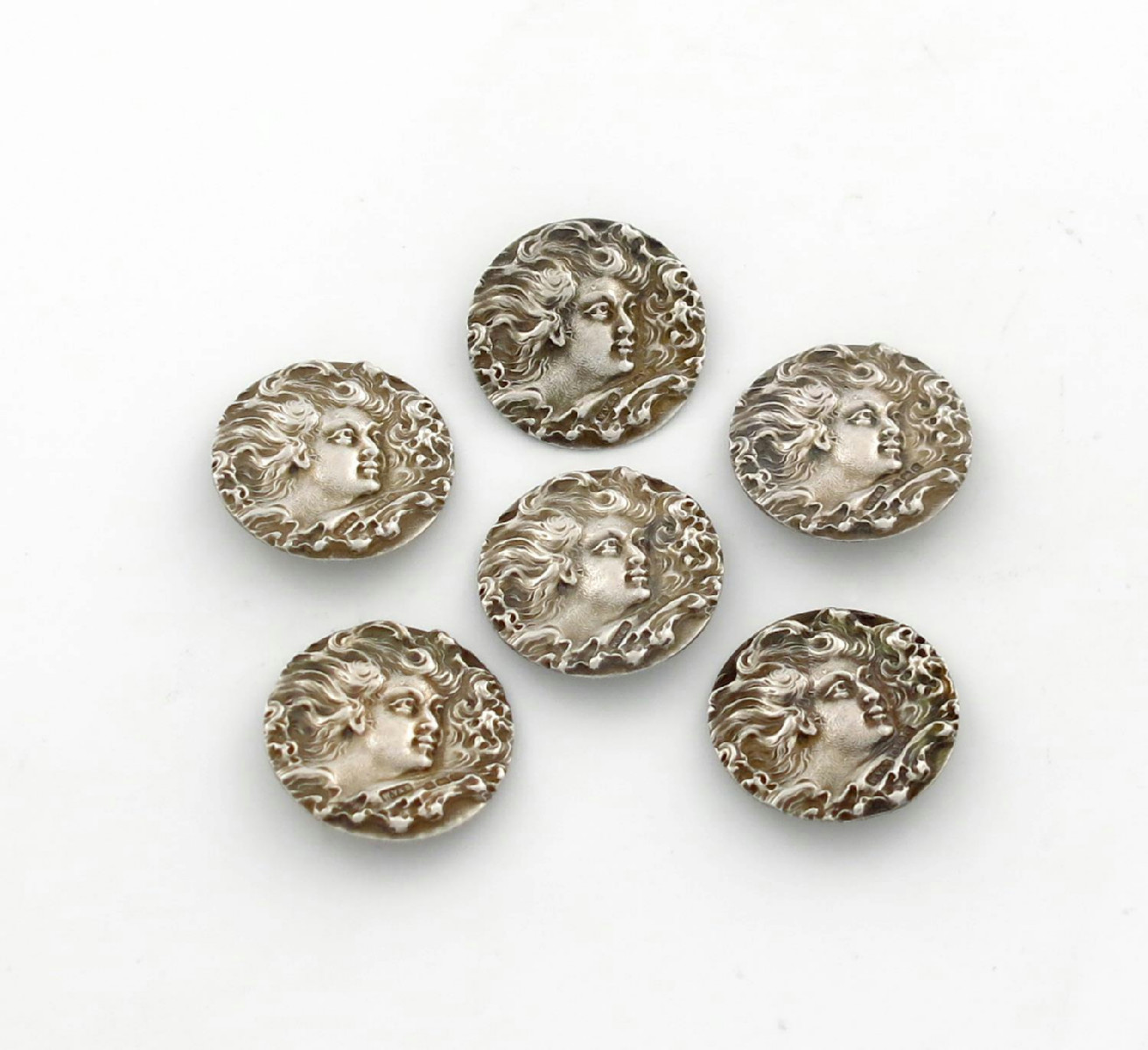 each depicting a girl's face with her hair circling round the whole circular disc, diameter 2.5cm, approx. weight 0.8oz.