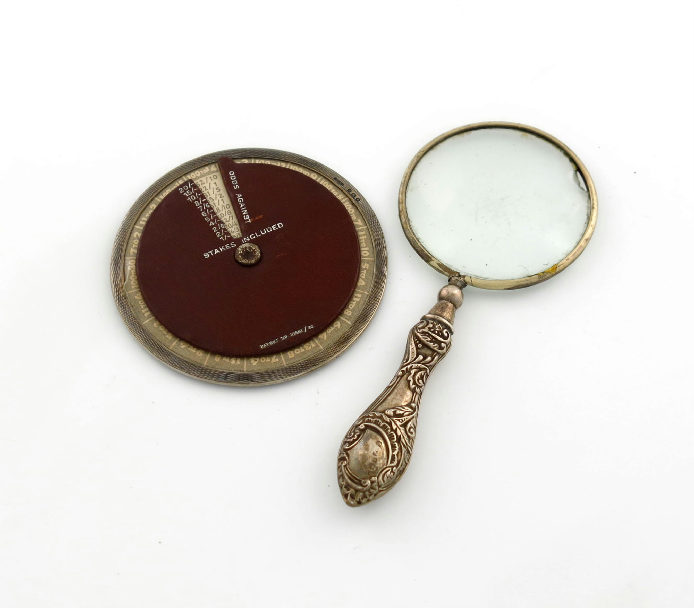 A silver-mounted racing odds calculator,