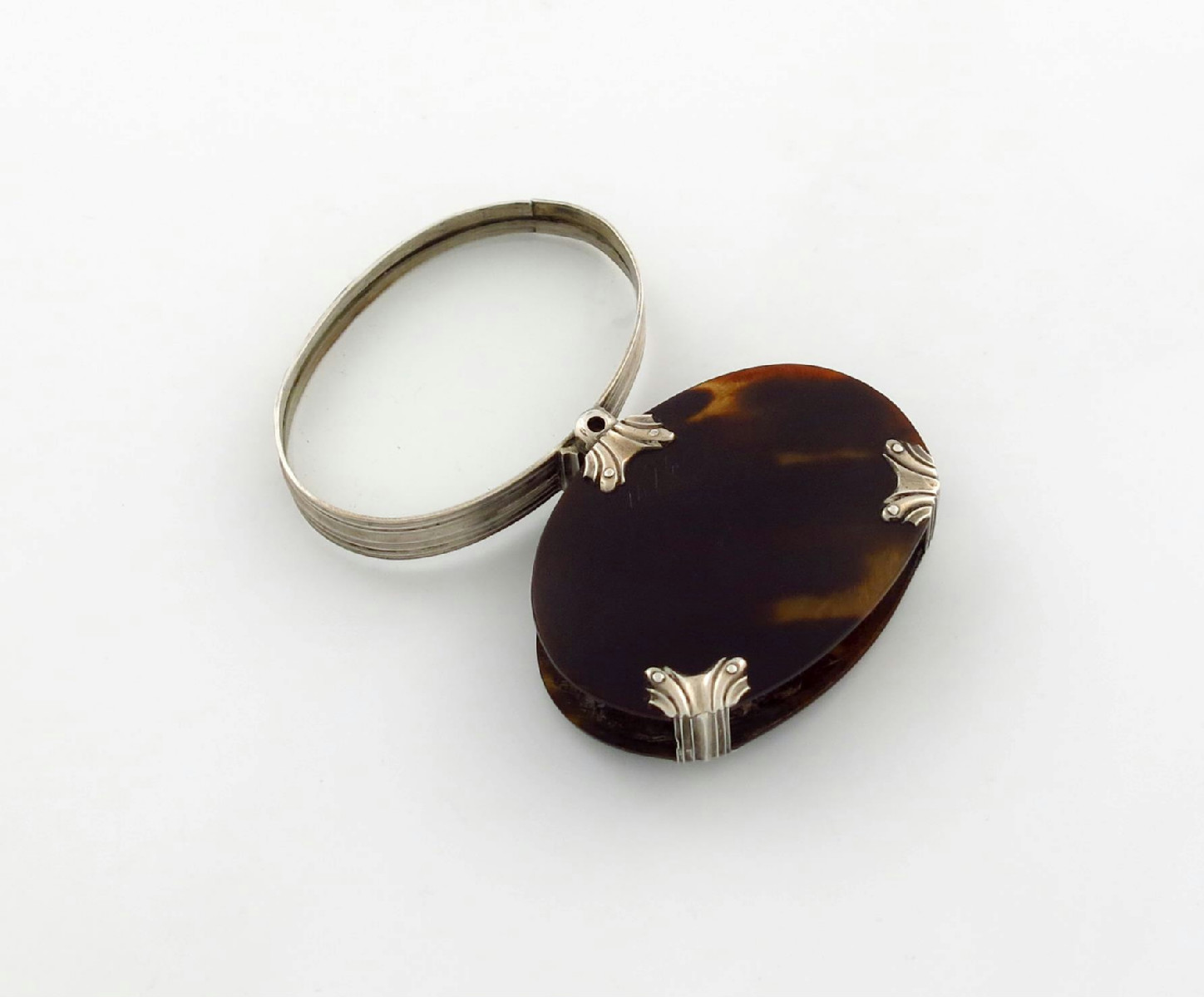 λA George III silver-mounted tortoiseshell magnifying glass,