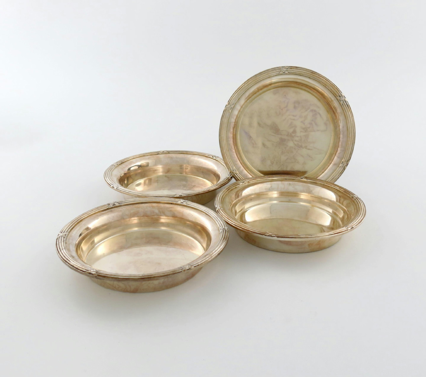 circular form, ribbon and reed borders, diameter 13.8cm, approx. weight 17oz. (4)