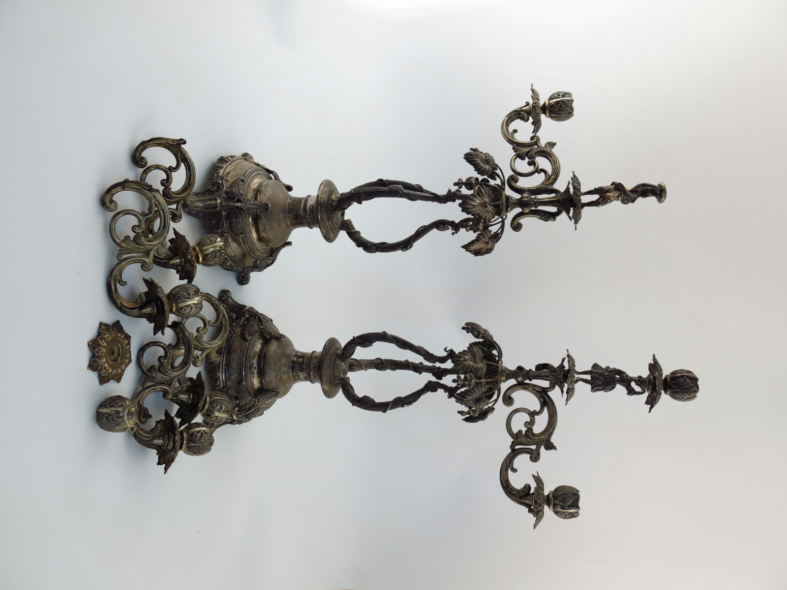 A pair of 19th century German / Austro-Hungarian silver four-light candelabra,