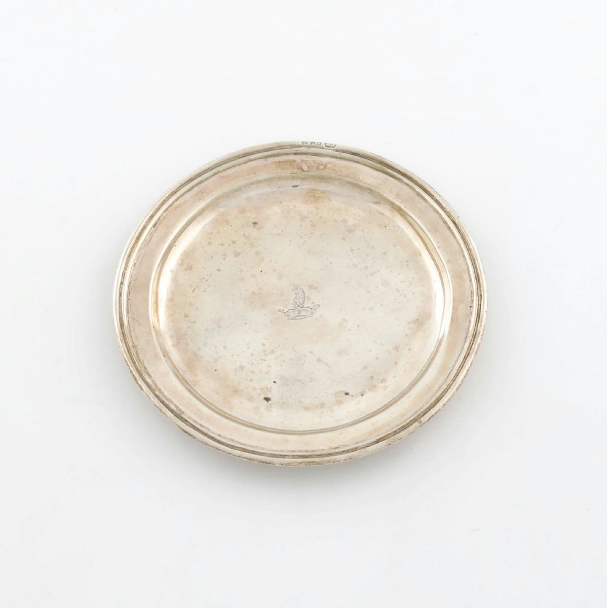 circular form, engraved with a crest, diameter 13.8cm, approx. weight 4.5oz.