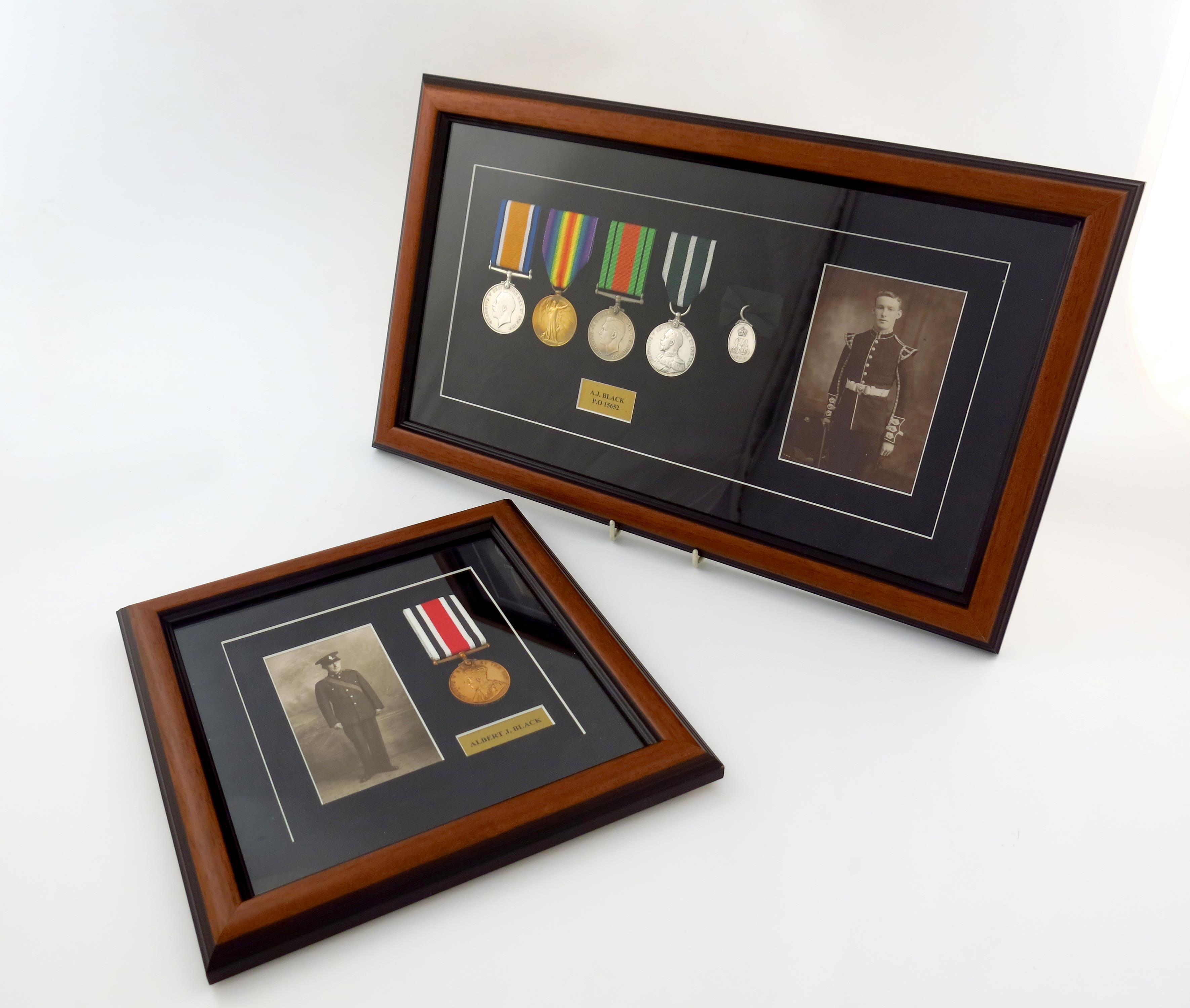 A Great War group of four, War and Victory medals (PO 15652 Pte. A. J. Black. R.M.L.I.); Defence medal; Royal Naval Reserve, LS & GC, Geo V; with medal for Royal Visit to India, 1911-12, mounted in glazed frame with photograph of recipient, very fine; Police, Special Constabulary Long Service medal, George V (Albert J. Black), mounted in glazed frame with photograph of recipient, nearly extremely fine. (2)