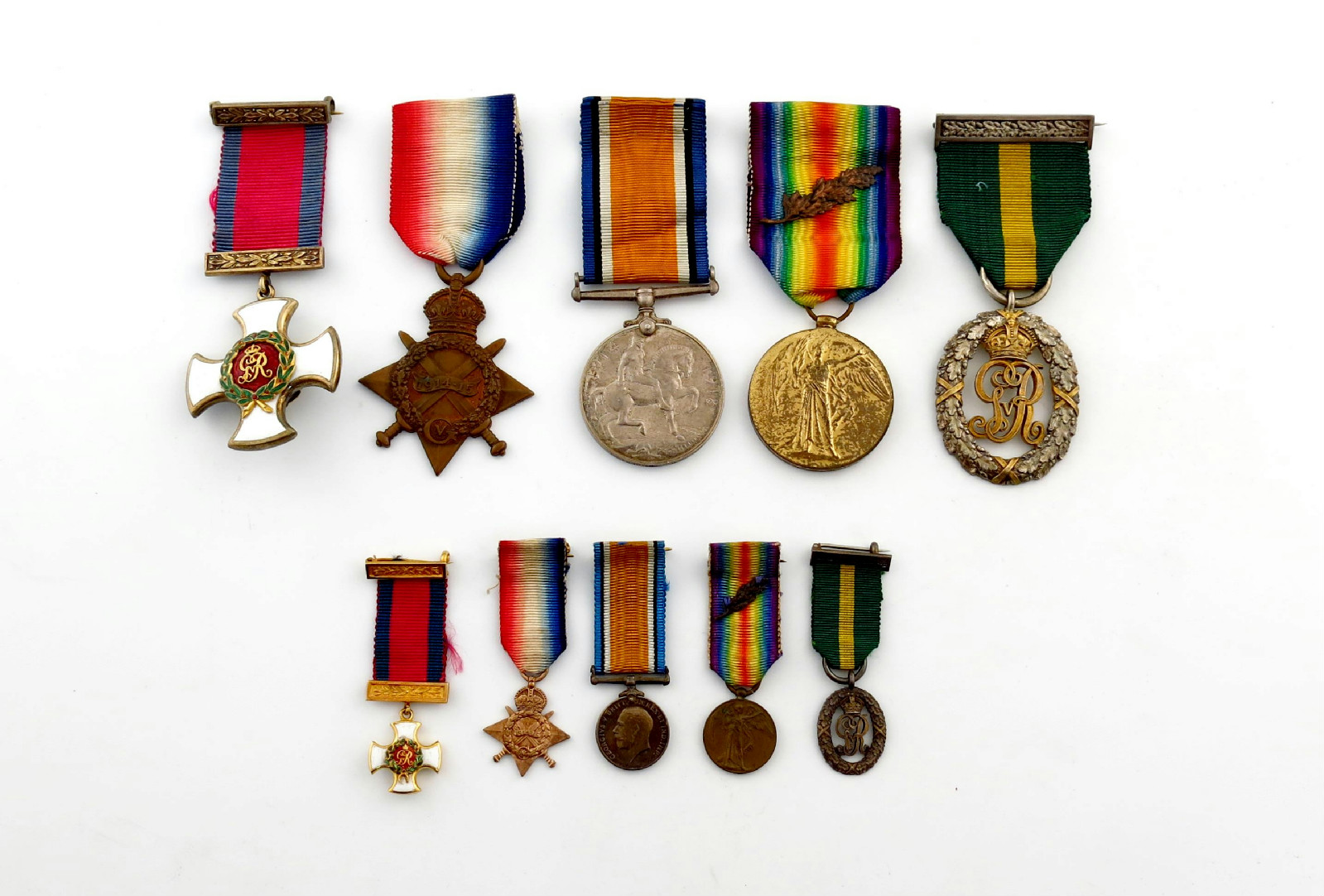 A Great War DSO group of five Orders and medals, to Lt. Colonel and Bat. Col. R T Pemberton, whose career spanned both World Wars; DSO, Geo V, silver-gilt and enamel, 1914-15 star (Major R. T. Pemberton. A.S.C.), War and Victory medals (Major), oak leaf for MiD; Territorial Decoration; with dress miniatures; DSO and TD in Garrard cases of issue; likewise all miniatures in Garrard cases of issue. Unworn, much as issued.