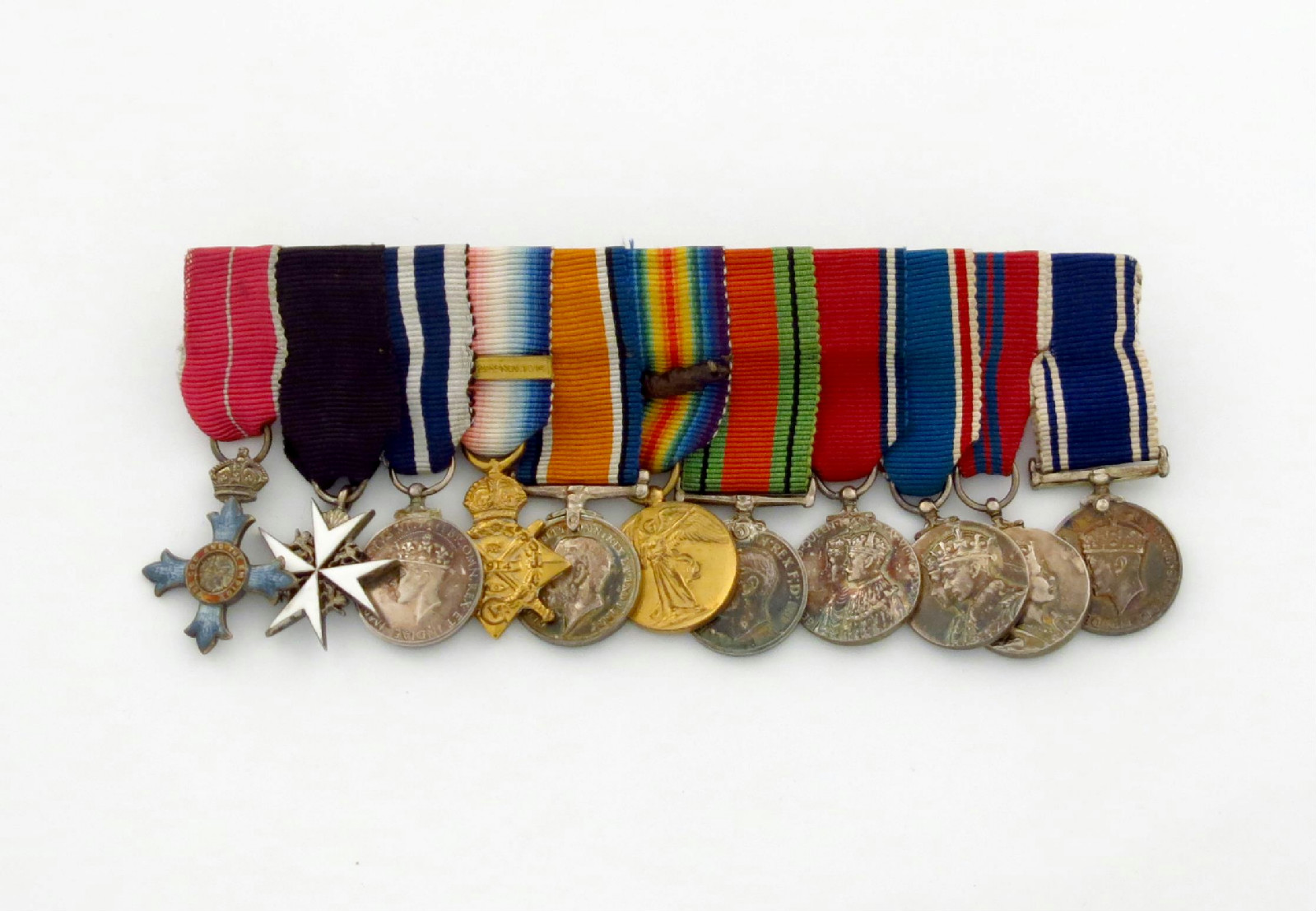 An interesting group of eleven Miniature Army and Police Orders, and Medals attributed to Major T. R. P. Warrencre, RASC; CBE Military, Order of St. John, King's Police Medal, Geo. VI, 1914 star, Mons clasp, War and Victory medals, latter with Oak Leaf for MiD, Defence, Jubilee 1935, Coronations 1937, 1953, Police LS&GC; in Spink case with initials T.R.P.W. on lid. Very fine.